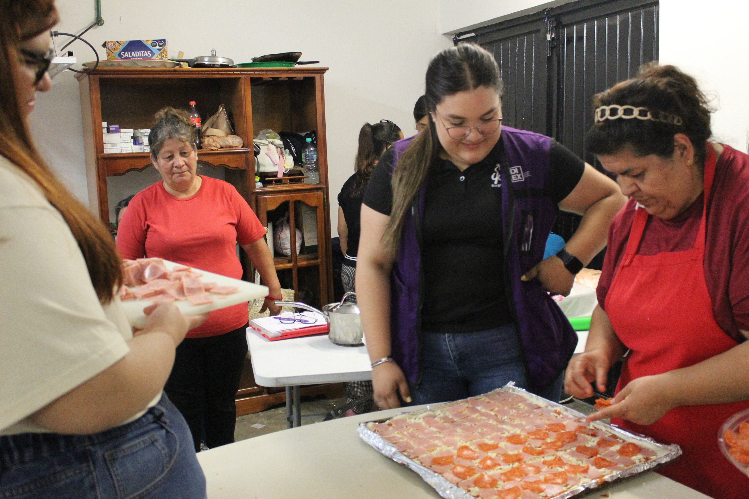 Durante la jornada, las y los estudiantes participaron en una dinámica culinaria en la que, junto con asistentes del club, prepararon pizzas caseras. Esta actividad no solo fomentó la convivencia y el trabajo colaborativo, sino que también permitió fortalecer habilidades sociales, promover el bienestar emocional y generar un ambiente cálido y participativo entre generaciones.